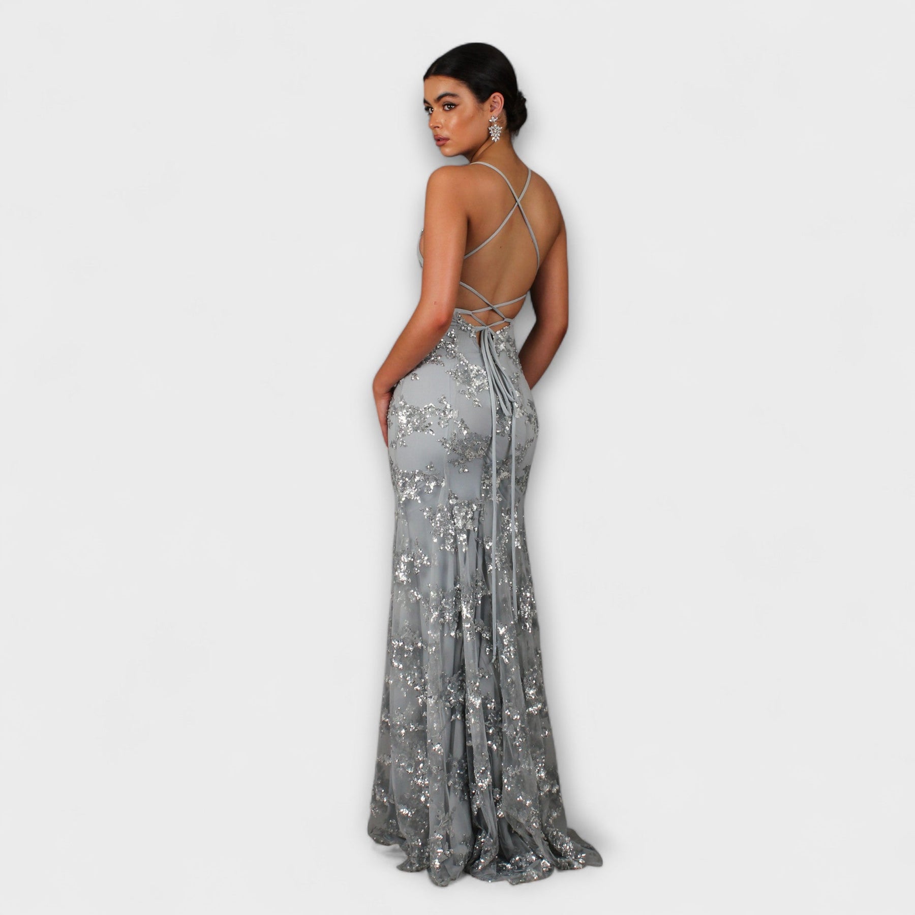 Zayla - Maxi šaty s odhaleným chrbtom a trblietkami, V výstrih